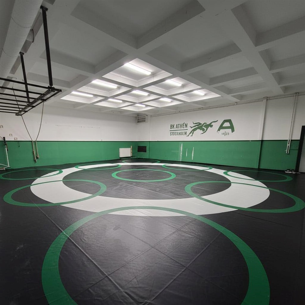 Under juluppehållet har vi påbörjat arbetet med flera planerade lokaluppgraderingar. I den stora hallen har vi hittills bytt ut den tidigare mattan på 10×10 meter mot en ny, större matta på 12×12 meter.